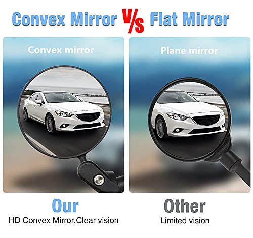 【Stevig en duurzaam】Convexe acryl en roestvrijstalen lens, hoge kwaliteit, slagvast, geen scheuren. De zeer solide constructie zorgt ervoor dat deze spiegel lang meegaat. Zelfs als je bergaf rijdt, trilt, barst of breekt de spiegel niet. Verwijder de beschermfolie van het oppervlak tijdens het gebruik.