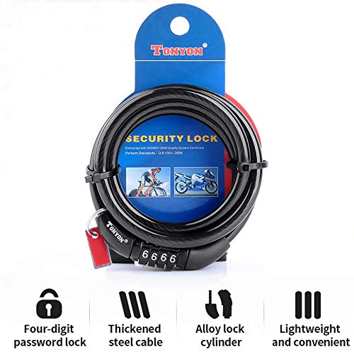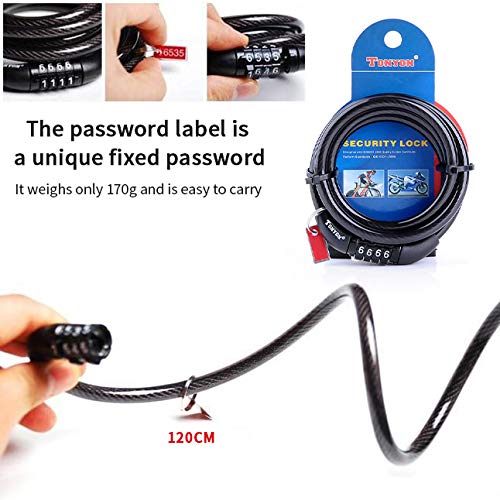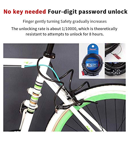 Specification: ACECYCLE 4-cijferig veiligheidskabelslot, resetbaar wachtwoord, mountainbike-racefiets-motorslot, 11,95 mm dikke…