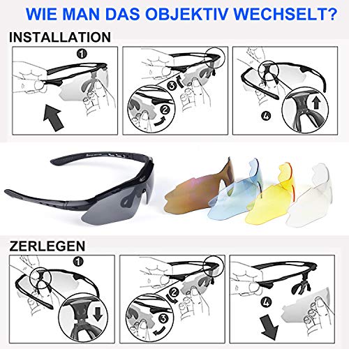Specification: Adkwse Sportbril voor dames en heren, gepolariseerde UV400-bescherming met 5 verwisselbare glazen, voor outdoorsport…