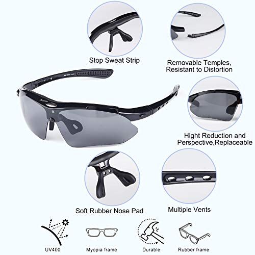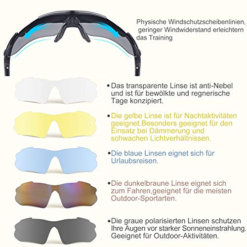 Adkwse Sportbril voor dames en heren, gepolariseerde UV400-bescherming met 5 verwisselbare glazen, voor outdoorsport…