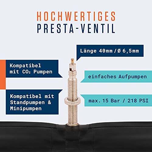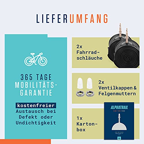 Specification: Alphatrail MTB Fiets Binnenband Rick 26 Inch SV Presta Ventiel 2x Set met Mobiliteitsgarantie I Compatibele Fietsbanden…
