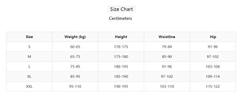 XL: hoogte 180-185 cm, taille 93-99 cm, lichaamsgewicht 85-95 kg.