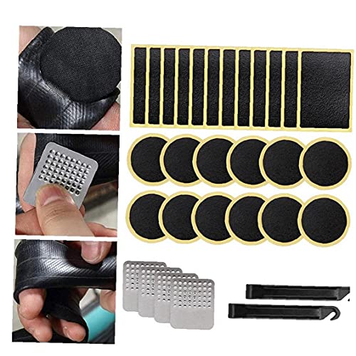 Specification: Bike Tire Glueless Puncture Repair Patches Self Adhesive Kitbicycle Tire Patch Levers Rasp Tool Bike Inner Tube Repair…