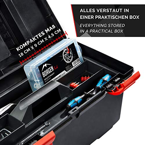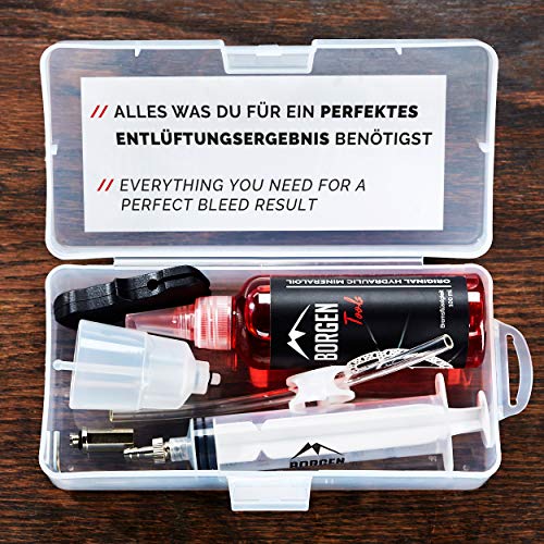 PRAKTISCHE BOX – Losse onderdelen zoals spuit, trechter, ontluchtingsblok, Shimano minerale olie en adapter van de Shimano-ontluchtingsset kunnen in de compacte box worden opgeborgen. Remvloeistof/olie is voldoende voor meerdere ontluchtingsprocessen