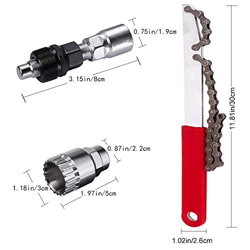 🚲🚲 Inhoud levering: 1 x cranktrekker, 1 x krukverwijderaar, 1 x trapasverwijderaar, 1 x kettingzweep, 1 x fietskettingverwijderaar, 1 x tandkranstrekker, 1 x fietsbandenlichter. Alle vijf gereedschappen vervullen hun functie perfect.