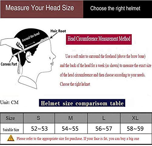 Maat helm: S (52-53CM), M (54-55CM), L (56-57CM), XL (58-59CM). Meet de hoofdomtrek nauwkeurig en kies de maat om te groot of te klein te vermijden.
