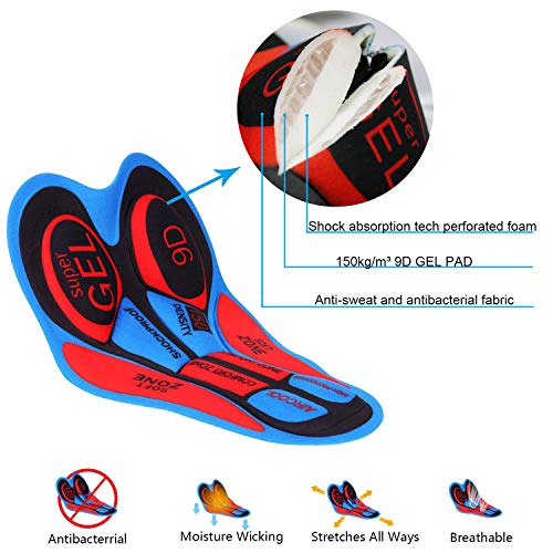【Anti-shock-functie】 9D Gel-pad in de broek verzwakt het gevoel van shock en verlicht heuppijn als gevolg van langdurig rijden, laat volledige bewegingsvrijheid toe en je huid ademt vrij. Vochtafvoerend 9D Gel-padding biedt veel comfort voor langer fietsen.
