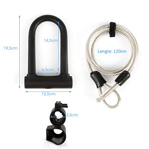 Specification: COSTWAY Fiets U-Slot, 16mm Zwaar uitgevoerde Fiets U-Slot met 1200mm Stalen Kabel & Montagebeugel, Fiets U-Slot met 3…