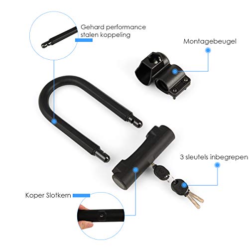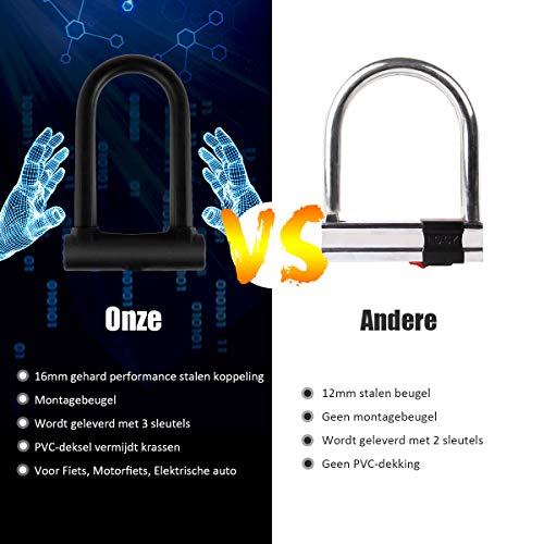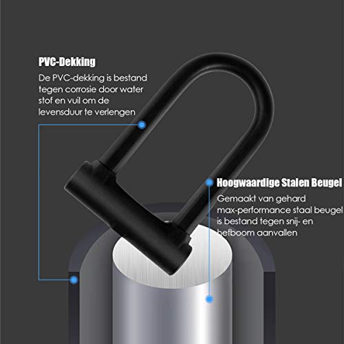 【Robuust en duurzaam U-Slot】Het U-Slot van de fiets is gemaakt van 16 mm gehard prestatiestaal. Deze dikte is superieur aan andere fietssloten op de markt. Zo kan het bestand zijn tegen snij- en hefboomkrach taanvallen. Het biedt u een hoge kwaliteit fietsbeveiliging.