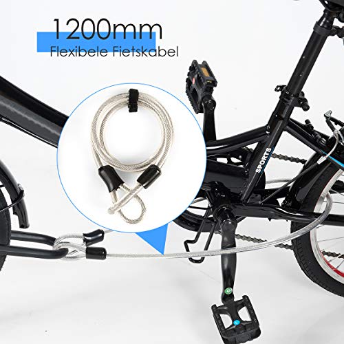 COSTWAY Fiets U-Slot, 16mm Zwaar uitgevoerde Fiets U-Slot met 1200mm Stalen Kabel & Montagebeugel, Fiets U-Slot met 3…