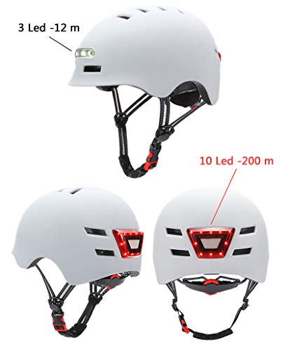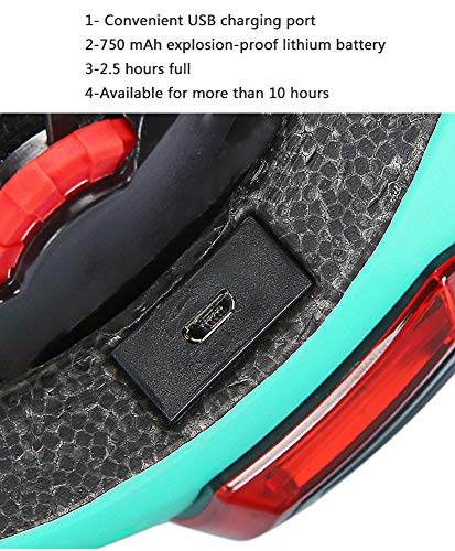 Fietshelm neemt de mening van verschillende hersenexperts over op basis van het veiligheidsprincipe, let eerst op veel factoren en ontwerpt ten slotte de perfecte fietshelm. Voorlicht: 3 witte leds (10 m), achterlicht: 10 rode leds (200 m). 4 lichtmodi, schakelaar met één knop. 750 mAh explosiebestendige lithiumbatterij, USB-oplading 2,5 uur, kan langer dan 12 uur worden gebruikt. Biedt ‘s nachts comfort en bescherming.