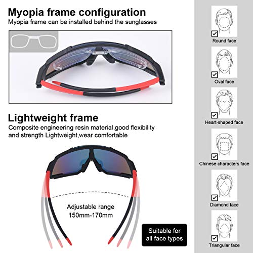 👓【Verstelbare Neuskussen】 De sportzonnebril wordt geleverd met een verstelbaar zacht ergonomisch neuskussen, dat kan worden aangepast aan de neusbrug. Het wordt geleverd met een bijziendheid frame voor kortzichtige lenzen, geen noodzaak om contactlenzen te plaatsen.