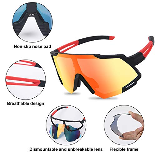 Specification: flintronic Polarized sportzonnebril UV-400 bescherming fietsbril met 5 verwisselbare lenzen, voor fietsen, hardlopen…
