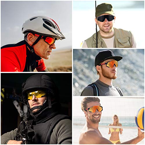 flintronic Polarized sportzonnebril UV-400 bescherming fietsbril met 5 verwisselbare lenzen, voor fietsen, hardlopen…