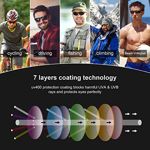 👓【UV400 Bescherming】 Alle lens 100% UV400 beschermlaag, blokkeert 100% schadelijke UVA- en UVB-stralen. Herstel de ware kleur, elimineer gereflecteerd licht en verspreid licht, maak het landschap helderder en zacht en bescherm de ogen perfect, en hoge kwaliteit lens en frames zijn impact, krasbestendig, onbreekbaar en duurzaam genoeg voor langdurig gebruik.