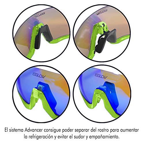 De siliconen neusbrug is aanpasbaar en beschikt over de Advancer-technologie, die de luchtdoorlaat bevordert en het beslaan en zweten van de glazen voorkomt.