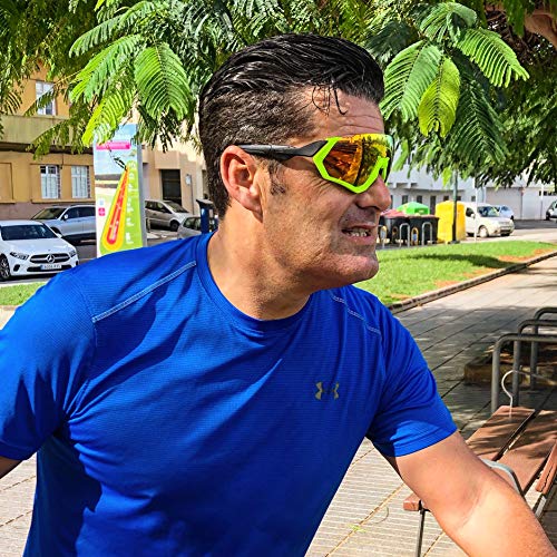 Gepolariseerde bril uniseks met 3 verwisselbare lenzen in de kleur AZUL REVO, polargrijs en transparant. Ze zijn duurzaam en schokbestendig. Verhoog het gezichtsveld en bescherm de Rayos UVA, UVB, UVC, UVC en UVC waterdichte lenzen en zussen