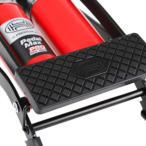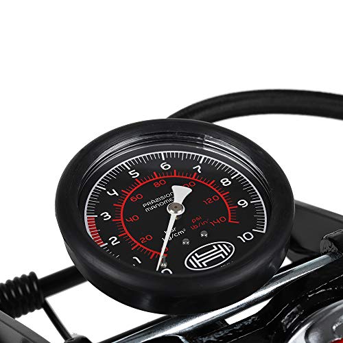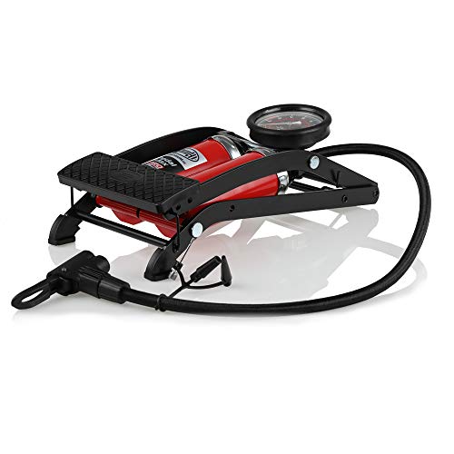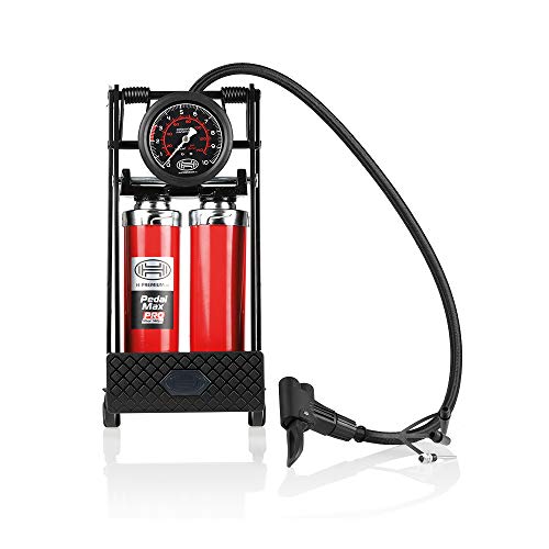 Specification: HEYNER® 22500N voetluchtpomp dubbele cilinder 2 cilinders met manometer tot 10 bar + tas