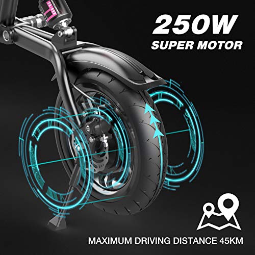 ► Krachtige motor, super lang bereik: 250 W 36 V motor. Deze elektrische fiets heeft een 7,5 Ah batterij en een motor van 250 W, met een volledig opgeladen accu kan hij tot 45 km reizen. Zeer geschikt voor stedentrips.