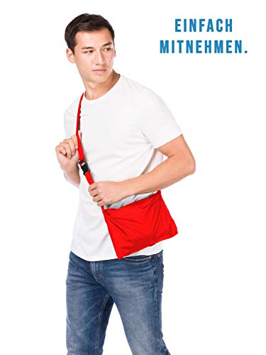 Praktisch in het dagelijks leven – de voorste binnenzak met dubbele functie kan je niet alleen kleine alledaagse voorwerpen tijdens het rijden veilig opbergen, maar de poncho ook als je hem niet gebruikt, ruimtebesparend opbergen. Met de extra draagriem kun je de fietsponcho vervolgens comfortabel om de heupen klemmen of casual over de schouder gooien.