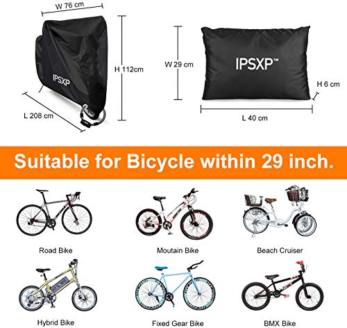 IPSXP Fietshoes, afdekzeil, 210D Oxford-weefsel, fietsbeschermhoes, fietsgarage met afsluitbaar gat voor 29 inch…