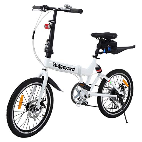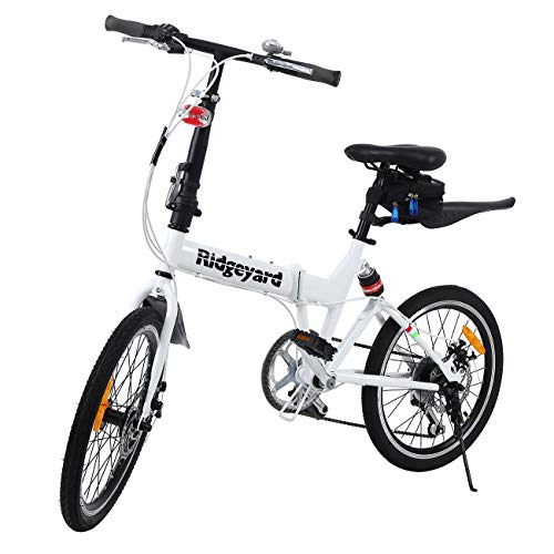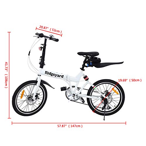 Specification: MuGuang Opvouwbare fiets 20 inch 7 versnellingen vouwmachine + LED batterij lamp + zittas + fietsbel (wit)