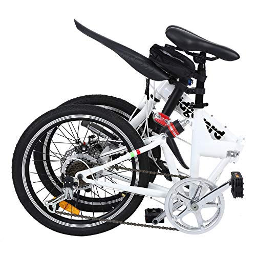 MuGuang Opvouwbare fiets 20 inch 7 versnellingen vouwmachine + LED batterij lamp + zittas + fietsbel (wit)