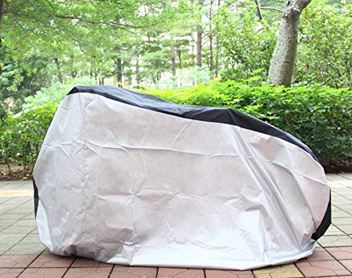 Protect your investment with Ohuhu’s Water and Wind Resistant Bike Cover. Repels from rain or shine, keeping your bike looking as good as new. Made with strong, Oxford Fabric to protect against scratch and stains. Ergonomically designed with elastic bottom hemming, buckle strap, and 2 cut out bike lock holes allowing you to easily cover and protect your bike. This large bike cover ensures the cover to fit any bike of up to 30″ wheel size.