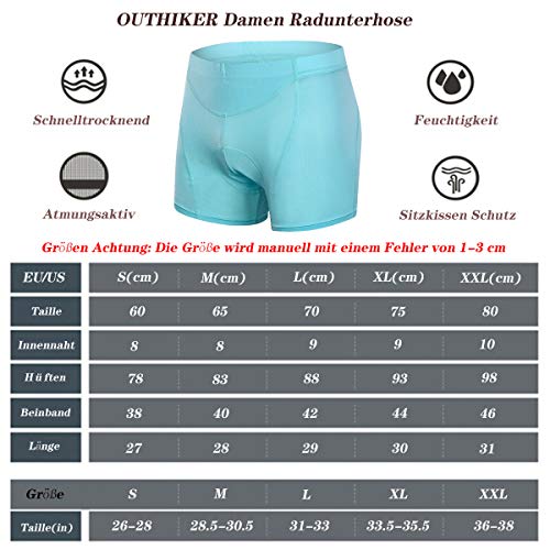 Specification: OUTHIKER Dames Fietsonderbroek met Zitkussen Ondergoed Sneldrogend Ademende 3D Spons Gewatteerde Fietsbroek