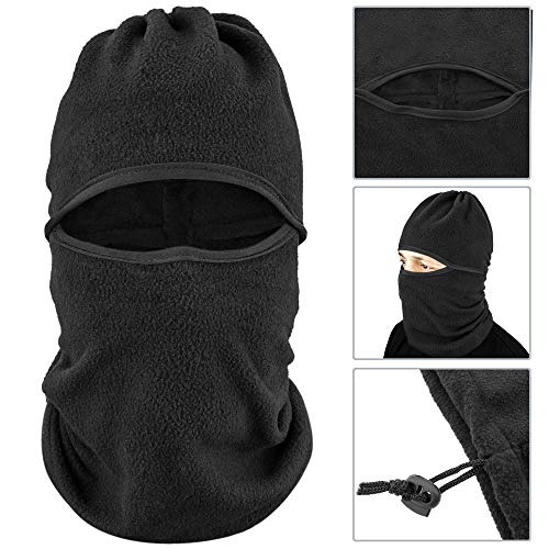 Stoffen bivakmuts die het gezicht en de hals bedekt. Beschermt tegen kou en zon. Dubbel ontwerp, omdat het een deel heeft voor de nek en het gebied onder de ogen, en een ander deel voor het gebied boven de ogen. Gemaakt van comfortabele zwarte stof, gevoerd en met een hoge thermische bescherming. Aan de ene kant heeft het een touw om te sluiten. Lengte: 440 mm. Breedte: 285 mm