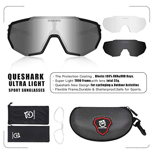 Specification: Queshark Fietsbril, TR90 Onbreekbaar Frame Gepolariseerde Sportzonnebril, Fietsbril Voor Heren Dames Met 3 Verwisselbare…