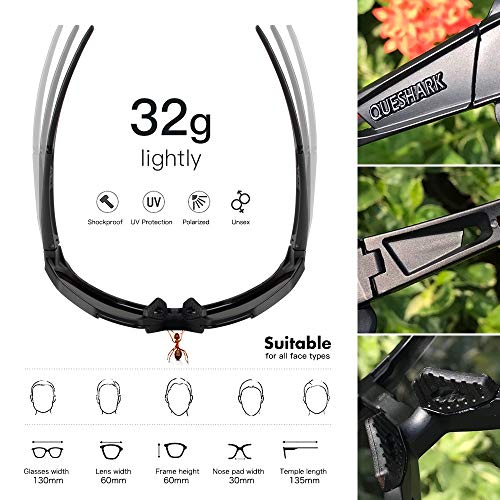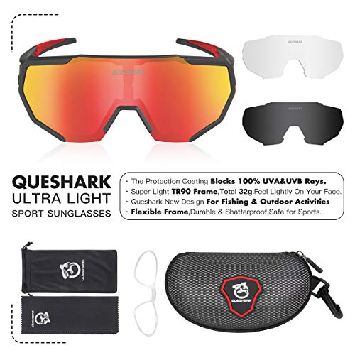 Specification: Queshark Gepolariseerde Fietsbrillen Met 3 Verwisselbare Lenzen Voor Heren Dames Hardlopen Rijden Vissen Golf…