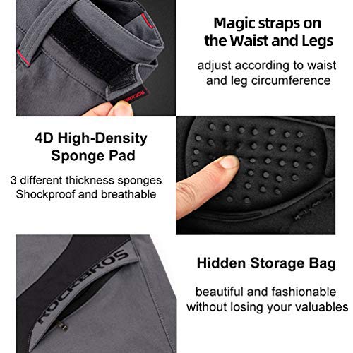【Uitneembare 4D-beschermkussens】 2-in-1-ontwerp, MTB-broek en fietsonderbroek met 4D-broekzeem en de fietsonderbroek kan snel worden verwijderd met behulp van metalen gespen. ROCKBROS-fietsbroeken gebruiken een luchtdoorlatende 4D-schuimpad met hoge dichtheid en een hoge elastische herstelkracht; Heuppijn of ongemak tijdens het fietsen kan effectief worden verlicht.