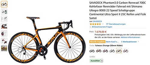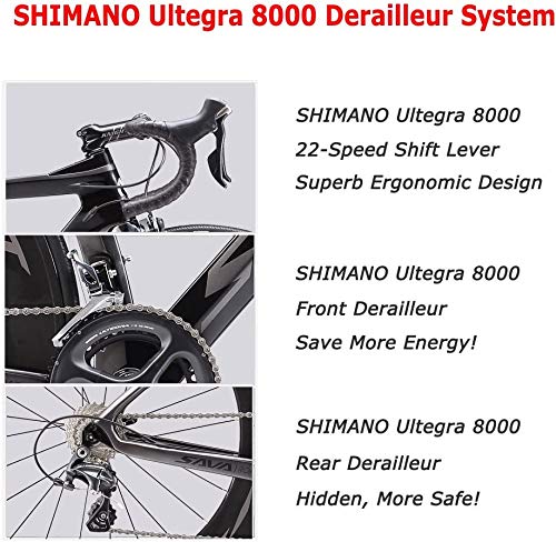 Specification: SAVADECK Phantom3.0 carbon racefiets 700C koolstofvezel fiets met Shimano Ultegra R8000 22 speed groepset Continental…