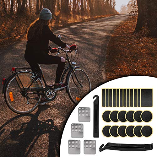 Specification: SAVITA 30 stuks reparatieset voor fietsbanden, zelfklevende fietsbanden, motorbanden met metalen rasp draagbare…