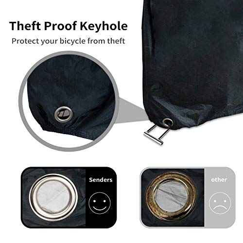 ☀ Veilige vergrendeling: aan de fietsbeschermhoes voor de fiets zitten twee slotdoorvoeringen in het voorwiel van het frame, die voor een veilig afsluiten van het wiel zorgen. Het slotgatenontwerp beschermt je fiets tegen diefstal.