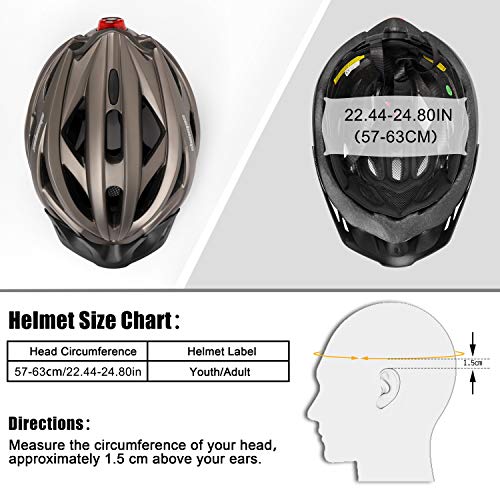 【Verstelbare maat en superlicht ontwerp】: Met de knoppen aan de achterkant van de fietshelm kun je de maat van de hoofdomtrek aanpassen. Verstelbare maat: (57-62 cm / 22,44-24,41 inch), superlicht gewicht: (280 g / 0,62 lbs).