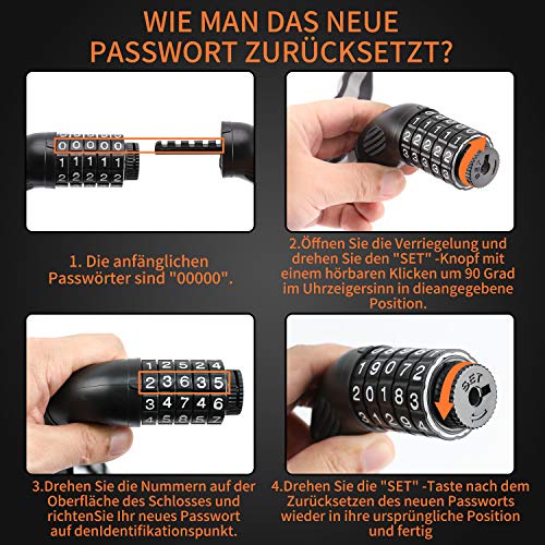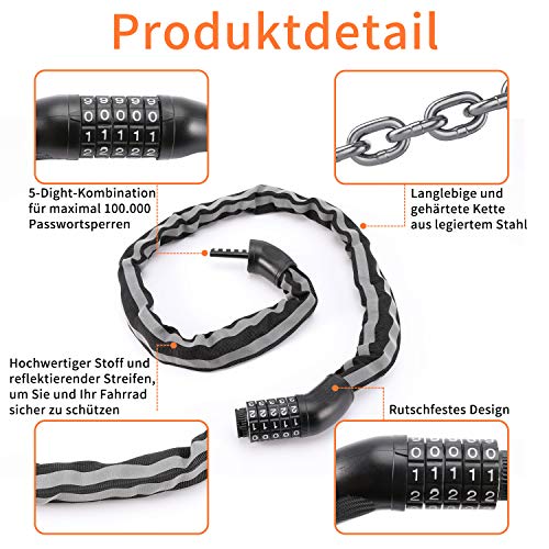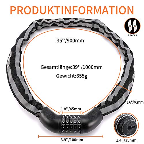 Specification: SOOHAO Fietsslot, 5-cijferig, terugzetbaar cijferslot, fietsslot, kabelslot met reflecterende strepen, kettingslot voor…