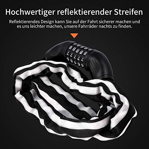 SOOHAO Fietsslot, 5-cijferig, terugzetbaar cijferslot, fietsslot, kabelslot met reflecterende strepen, kettingslot voor…