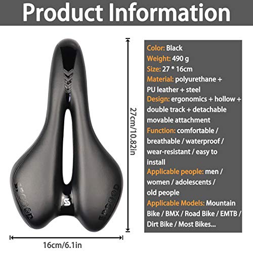 【Decompressie & schokdemping & wrijvingsvermindering】Het fietszadel heeft een ergonomisch design, hol en ademend design, gestroomlijnd design en smal frontdesign. Het vermindert de druk op de heupen en de kracht van het lichaam. Het heeft een uitstekende en maximale slagvastheid en wordt geventileerd om warmte en zweet af te voeren, zodat je een comfortabelere rijervaring hebt.