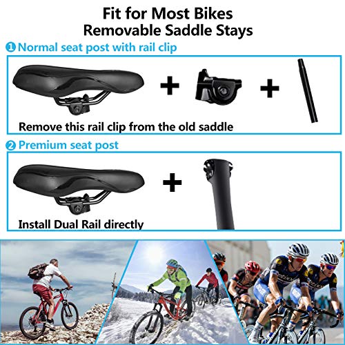 【Universeel zitje】Het fietszadel heeft een universeel design, dat geschikt is voor bijna alle standaard fietsen, zoals mountainbikes, racefietsen, stadsfietsen, wandelfietsen, cruiser-fietsen, elektrische fietsen enz. Of je nu op een grindstraat of op het strand rijdt, je kunt de hele dag probleemloos en zonder stress rijden. Het is ook een leuk cadeau voor familie en vrienden.