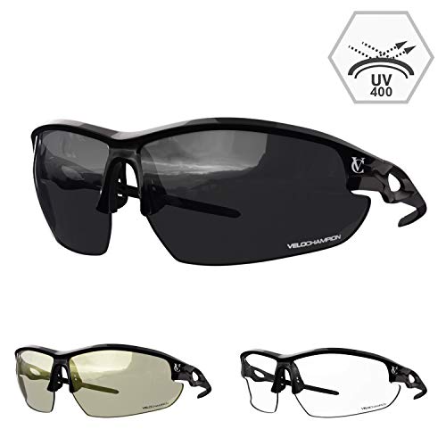 ✅ Wat je krijgt: zonnebril met rookglazen, gele schemerglazen, heldere glazen, zachte microvezel-draagtas.